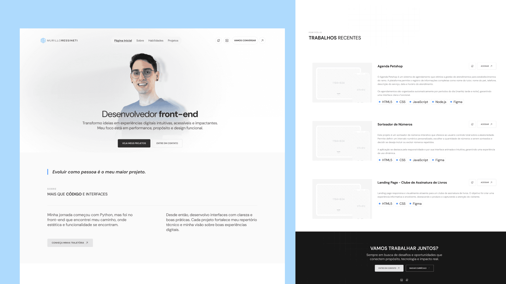 Hero with a clear value message: “Front-end developer — performance, purpose, and functional design.”