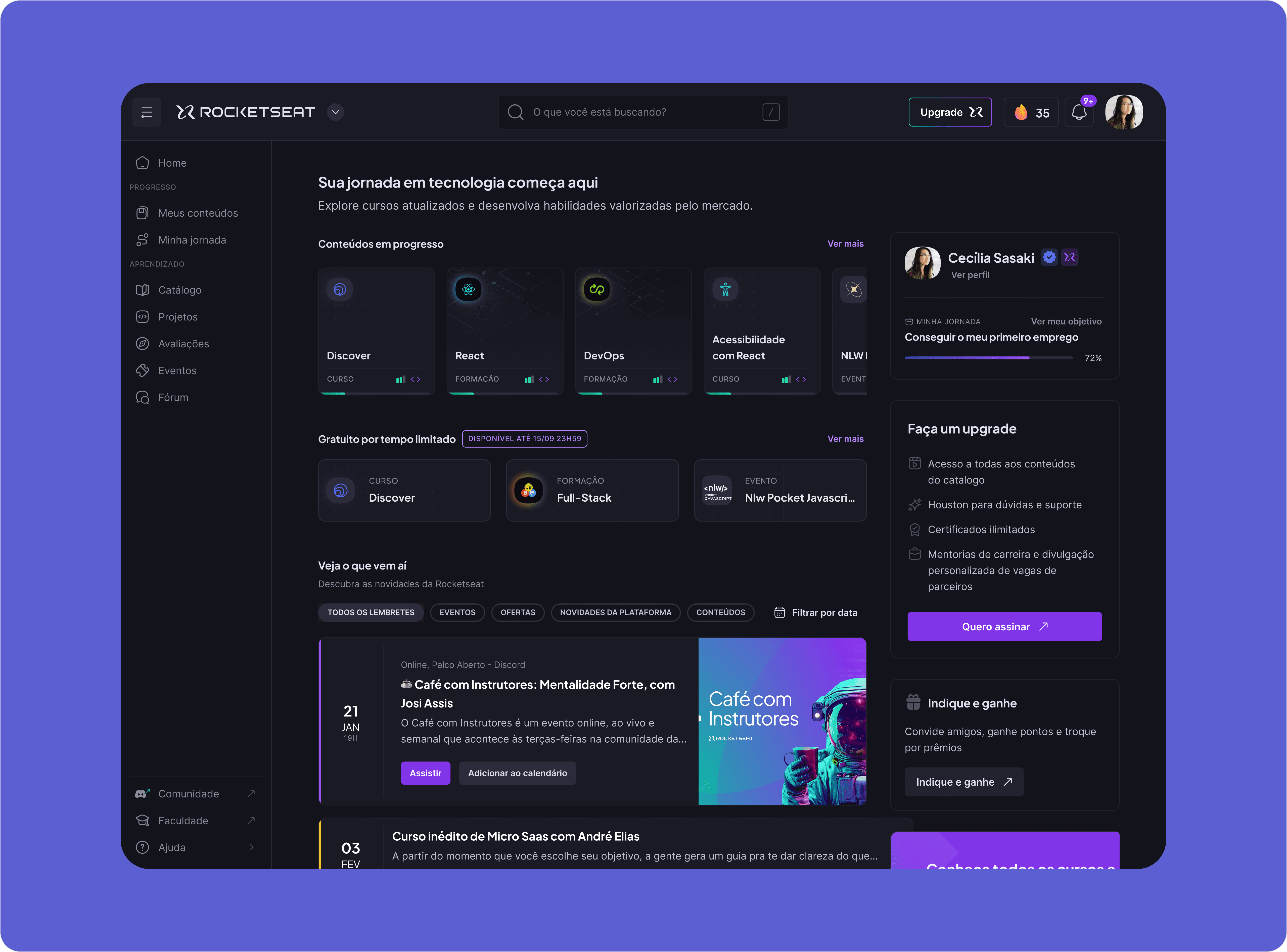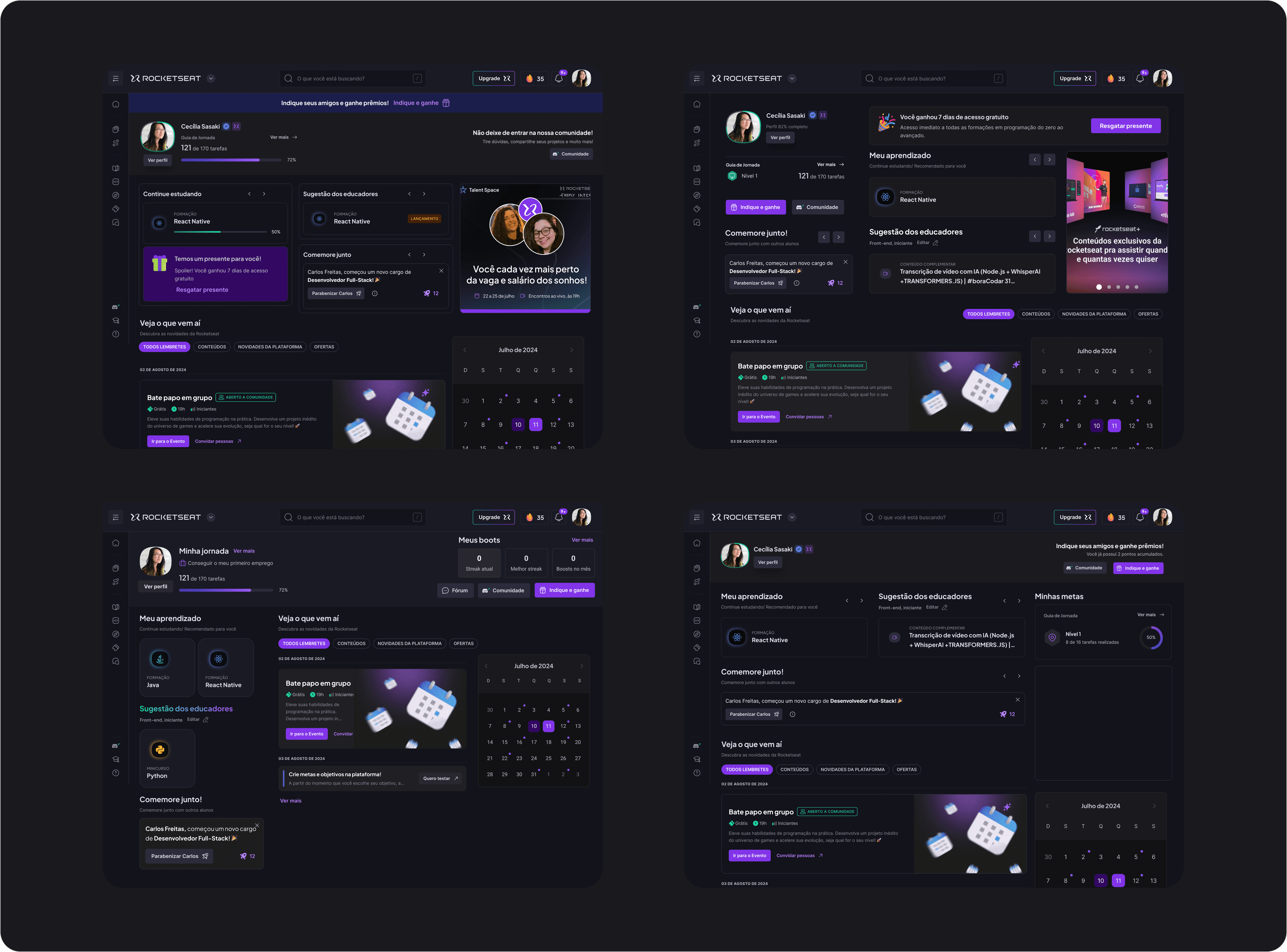 The objective of this project was to create a new experience for the platform's Home, focusing on understanding the usage pain points and identifying which information would generate real value for the student.